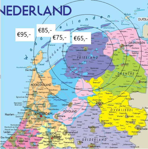 N.B. : – Waddeneilanden en evenementen buiten de aangegeven regio in overleg.